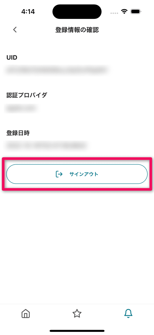星こよみアカウントからサインアウトするには『サイドメニュー』→『アカウント』→『登録情報の確認』から『サインアウト』ボタンをタップします。